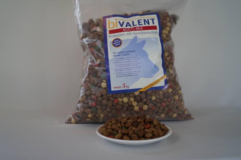 Geflügeltrockenfleisch, Mais, Reis, Weizen, Griebenmehl, Pflanzenöl, Rinderfett, Karottennudeln (3 %), Bierhefe, Rübenfaser