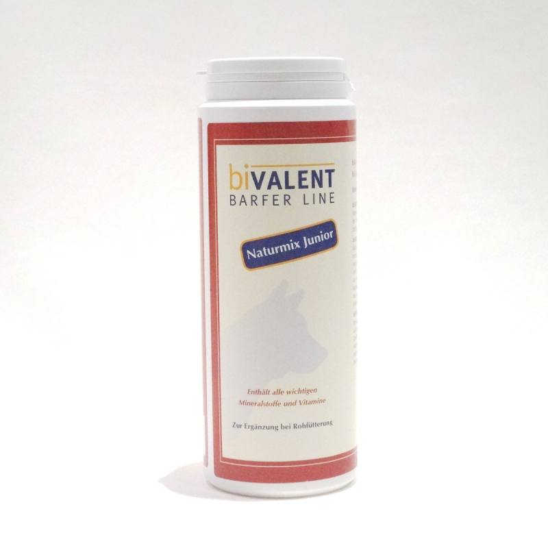 biVALENT Naturmix Junior ist hochverdaulich, schmeckt den Hunden gut, und sollte Ihrem Vierbeiner so lange zum Futter dazu gegeben werden, bis er ausgewachsen ist. Unser Naturmix Junior enthält eine Vielzahl hochwertiger Rohstoffe wie: Calciumcarbonat,Hefe für den Vitamin B Komplex, Seealgen für die Mineralien- und Jodversorgung und die Versorgung mit natürlichen Vitaminen, sowie Grünlippmuschelfleischmehl für Bänder, Muskulatur, Knochen und Bindegewebe.Ebenso erhält Ihr Hund das so wichtige Vitamin D3 über die Seealgen, denn Vitamin D3 ist notwendig damit das Calcium in die Knochensubstanz eingebaut werden kann.