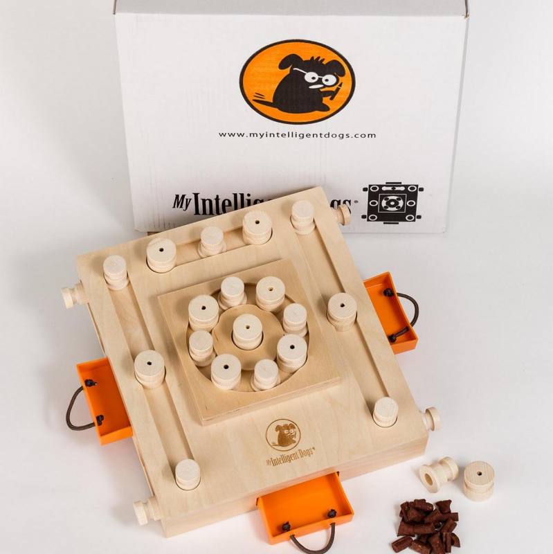 Schildkröte ist ein höchst anspruchvolles Geschicklichkeitsspiel, bei dem der Hund wirklich gefordert wird. Auch hier können Sie alle verfügbaren Schwierigkeitsstufen von 1- 4 durchspielen. So kann man ganz indiduell den Schwierigskeitgrad Schritt für Schritt steigern, und der Geschicklichkeit des Hundes anpassen. Dadurch ist gewährleistet, das ihr vierbeiniger Liebling auch den Spaß und die Freude an diesem Spiel behält.Das Speil wird mit 4 Schubladen, 9 Walzen und 13 Hüten ausgeliefert. Durch die Zugabe von zusätzlichen Spielhüten, kann man das Spiel auf bis zu 44 Versteckmöglichkeiten ausbauen. Die hochwertige Verarbeitung aus überwiegend Holz, sorgt für eine Langlebigkeit des Spiels, auch wenn ihr Hund einmal kurz auf die Hüte beißt.